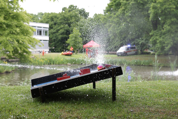 In Kooperation mit der Berufsfeuerwehr Bremen und der freiwilligen Feuerwehr Arsten wird die Sicherung der Starts und Landungen der Rettungshubschrauber durchgeführt. Mit der Spritzpumpe wird drauf los gelöscht. Außerdem findet hier Spiel, Spaß und Spannung mit Feuerwehraktivitäten für Kinder statt.