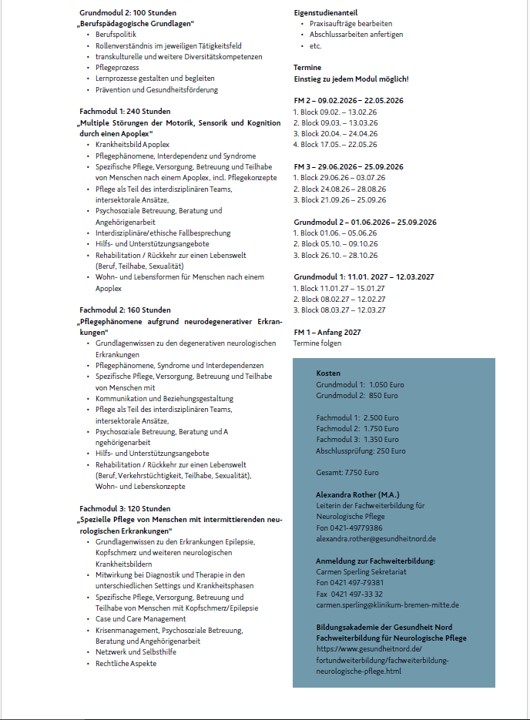 Fachpflege für Neurologie - Kursleitung: