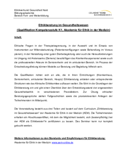 Qualifikation Kompetenzstufe K1, Akademie für Ethik in der Medizin