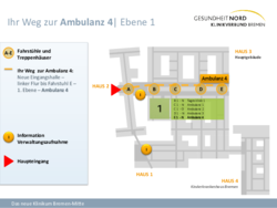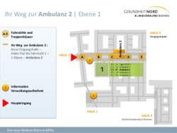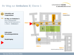 Ambulanz 1, Ebene 1. - Unsere Station Hanse befindet sich auf Ebene 3.