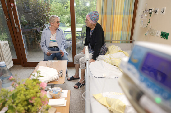 Nun ist Ellen Reim regelmäßig als Geschichtenpflegerin auf der Palliativstation tätig. Sie sagt: „Ich bin sehr dankbar für die Aufnahme, die ich auf der Station und von den Patientinnen und Patienten gefunden habe. Ich hoffe, ich kann noch lange einen Beitrag dazu leisten, dass der Aufenthalt auf der Station als so angenehm wie möglich empfunden wird.“