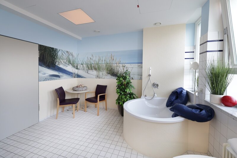 „Wir haben denke ich einen wirklich schönen Bereich geschaffen, in dem wir eine sichere Geburt in einem ruhigen Umfeld ermöglichen können“, sagt PD Dr. Marc-Philipp Radosa, Chefarzt der Klinik für Gynäkologie und Geburtshilfe im Klinikum Bremen-Nord. „Es ist deutlich mehr als nur ein Übergangskreißsaal, sondern ein Ort mit Wohlfühlpotenzial.“ Neu ist zudem ein sogenannter Be-up-Kreißsaal – also ein Gebärraum, der der werdenden Mutter mittels bunter Polster und Hilfsmitteln weitere Alternativen zur eher klassischen Geburt im Liegen ermöglicht. „Damit fördern wir zusätzlich aktivere Positionen, die vielen Frauen während der Geburt gut tun und die natürliche Geburt unterstützen“, sagt Hebamme Imke Helmke.